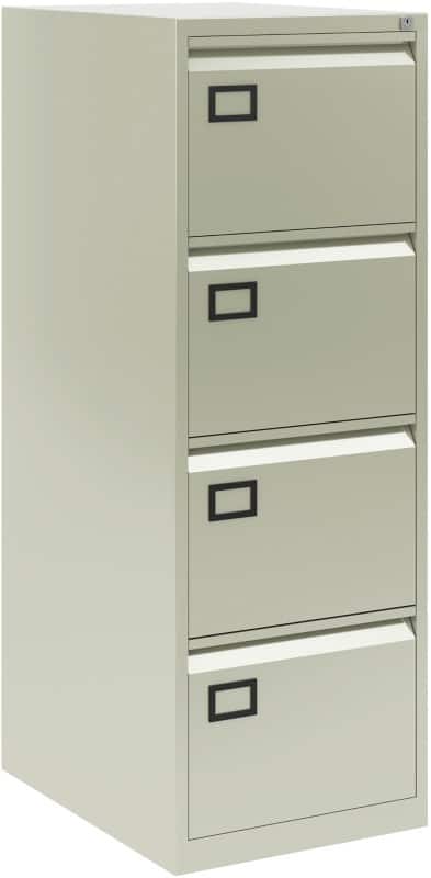 The filing cabinet has four drawers that hold up to 45 kg each and are suitable for a4 or foolscap sized folders.